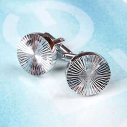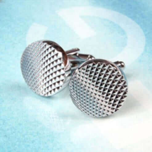e botões de punho personalizados em prata esterlina para homens que são gravados usando um método preciso de corte de diamantes.