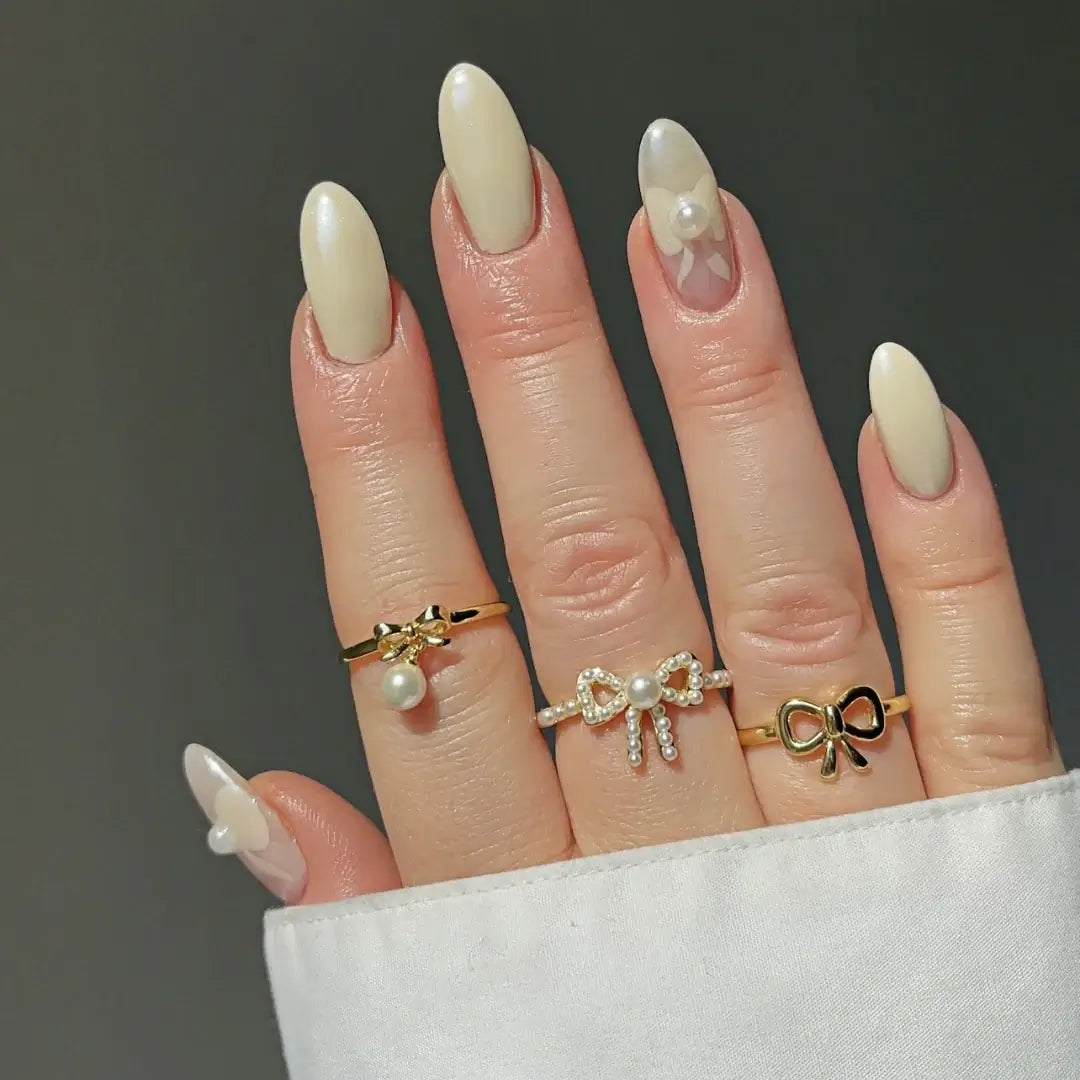 Adorable Pearl Dangle Gold Bow Tie Ring