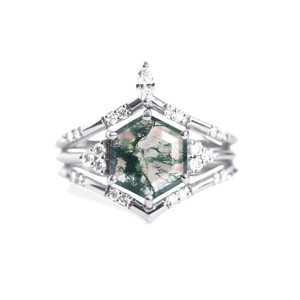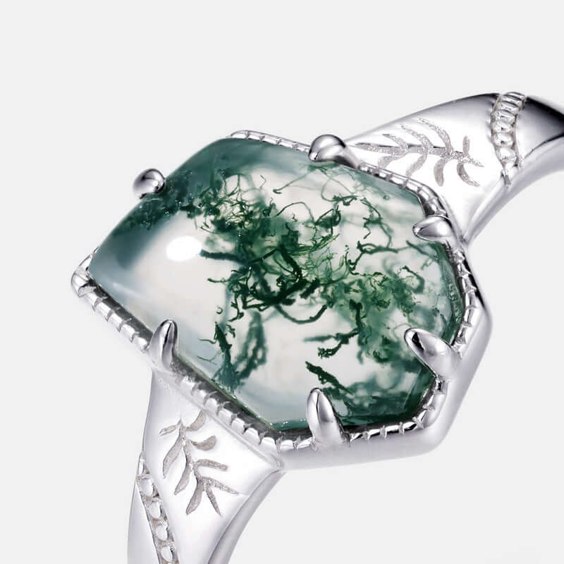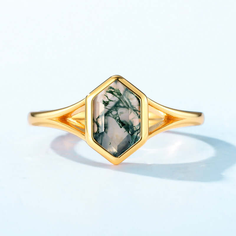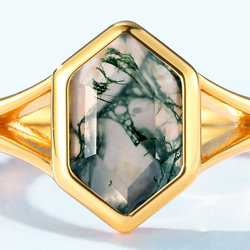 Trend olla Hexagon Schnitt Moos Achat Verlobung sring