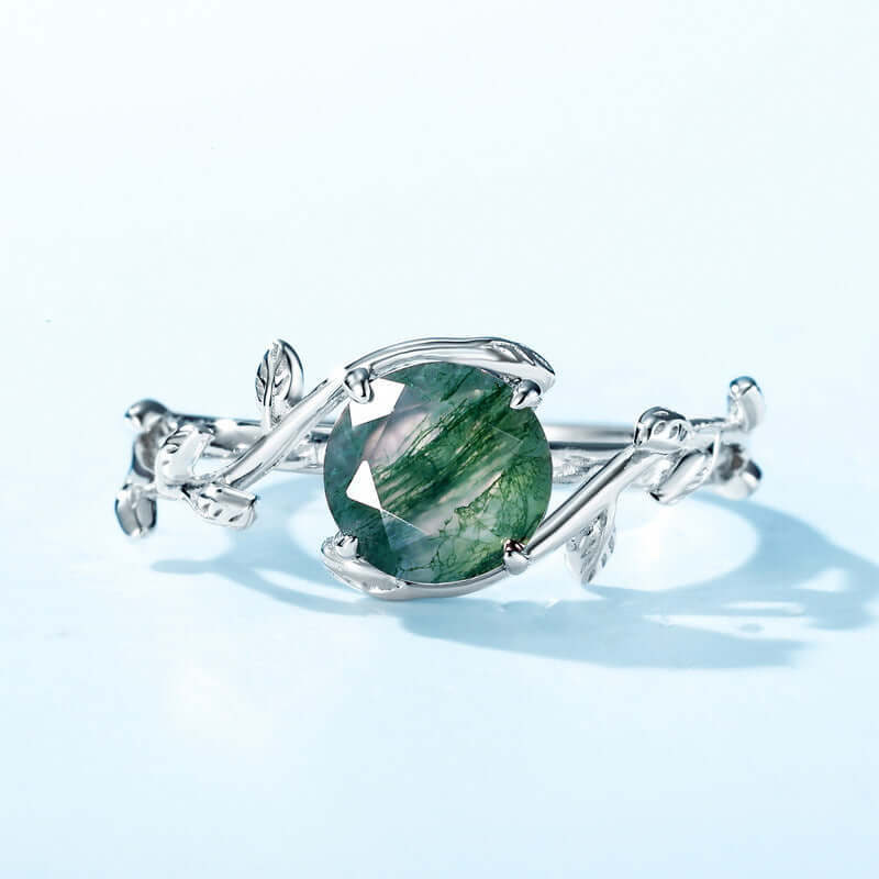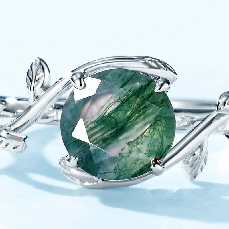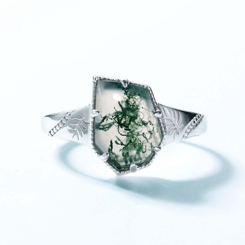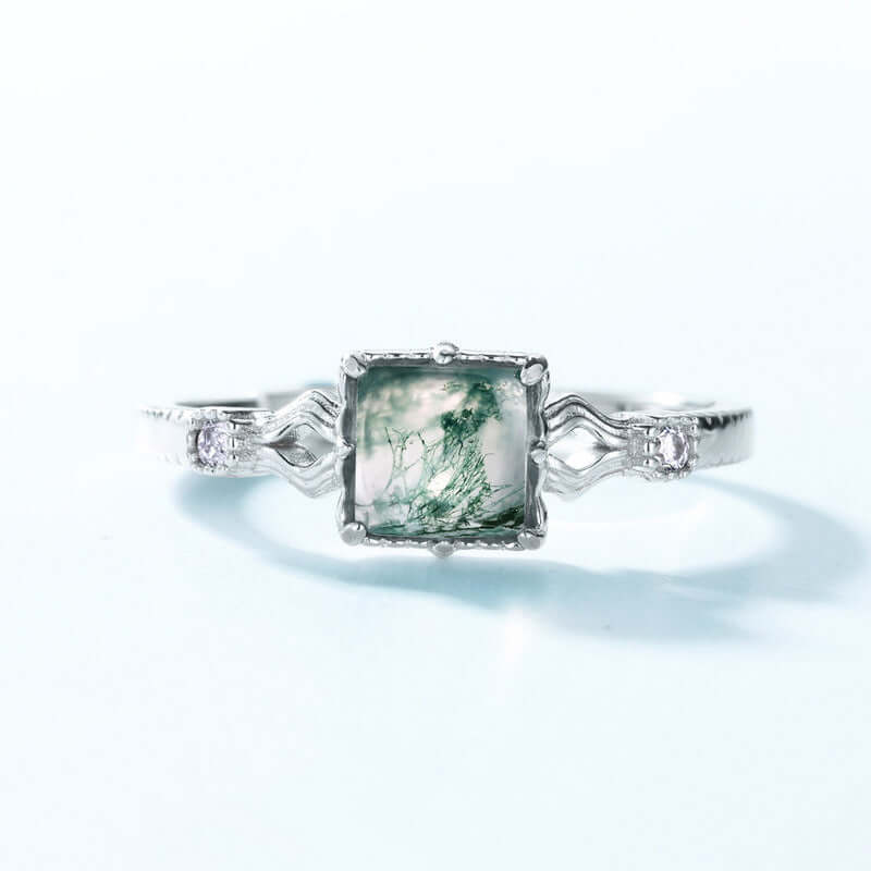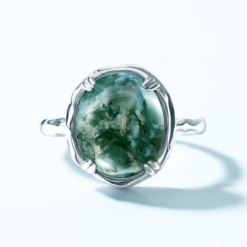 925er Sterlingsilber Natürlicher Moosachat Verlobungsring