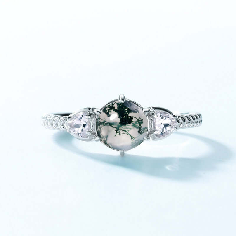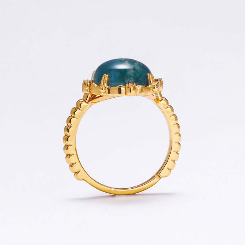 Runder Mondstein-Moos-Achat-Verlobungsring