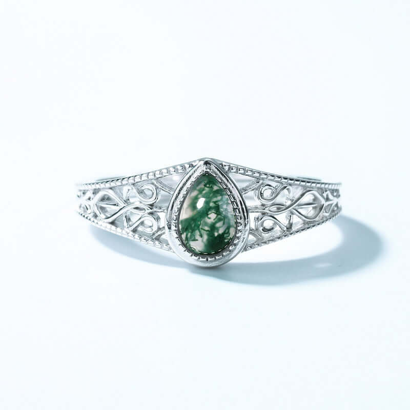 925 Silver Moss Agate Drop Shaped Ring