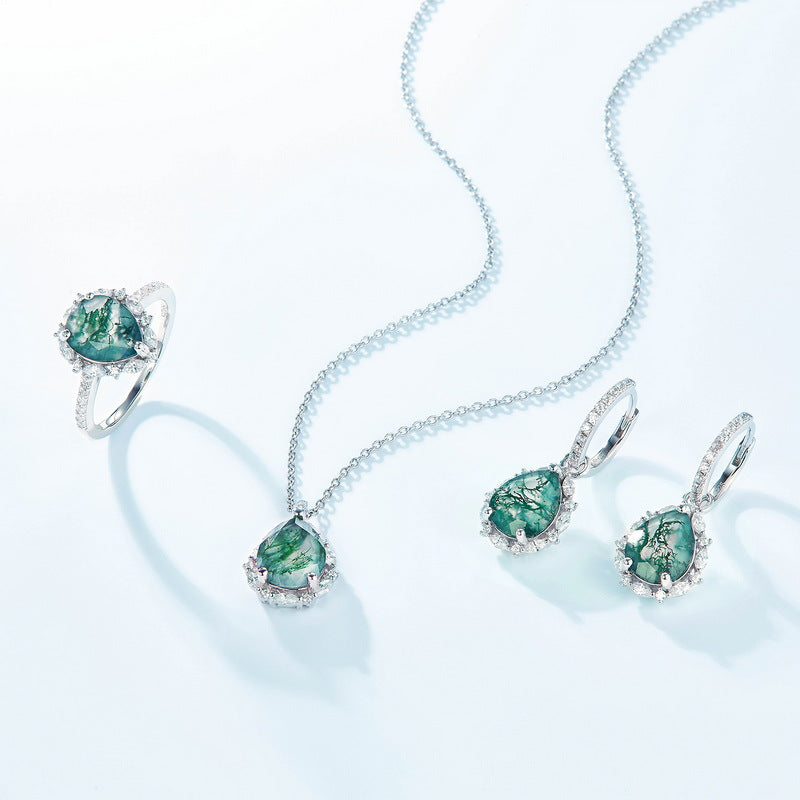 Tropfenförmiger Verlobungsring mit Aqua-Moos-Achat