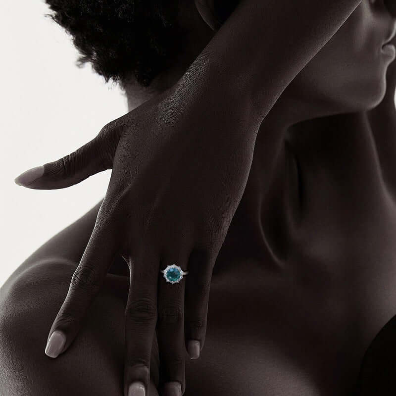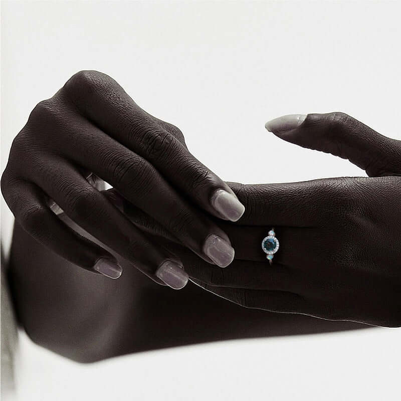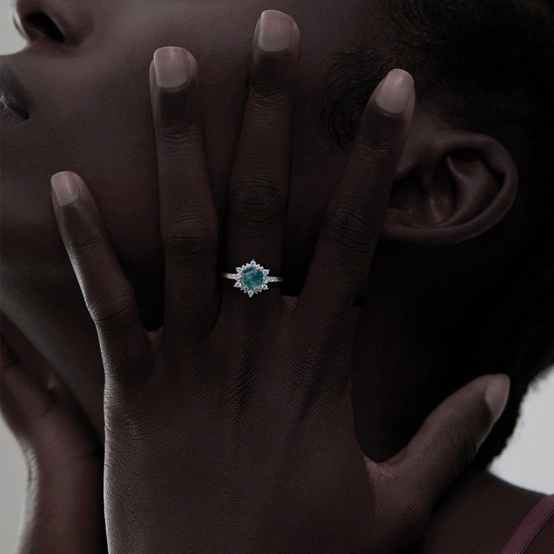 925 Silver Square Aquatic Agate CZ Diamond Ring