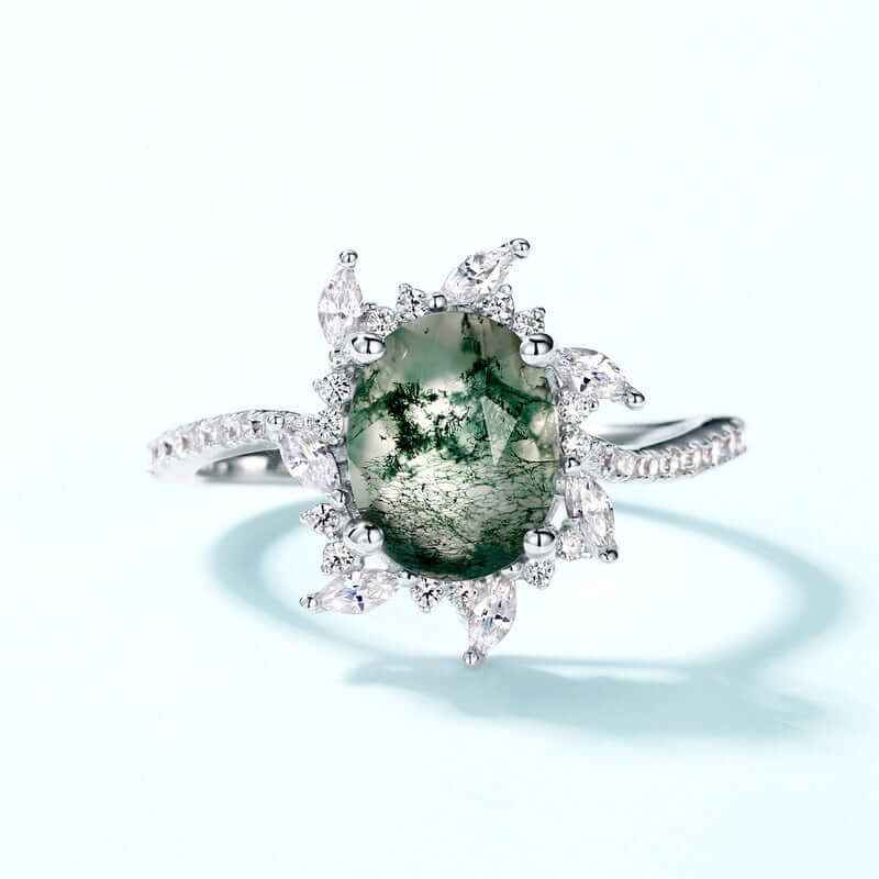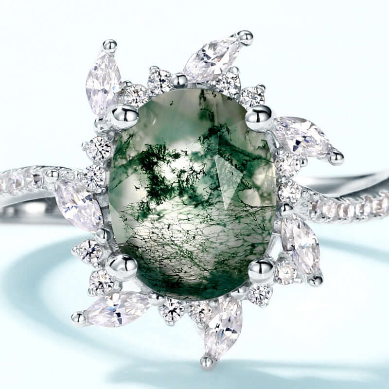 Ovaler Schnitt Zirkonia Moos Achat Verlobung sring