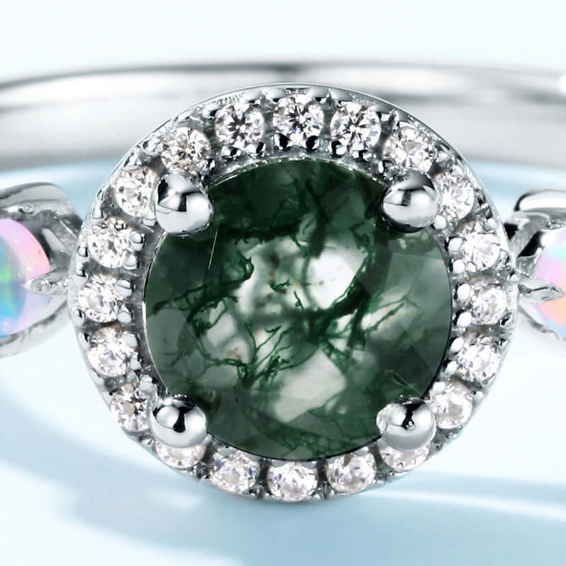 S925 Opal Kite Schnitt Moos Achat Verlobung sring