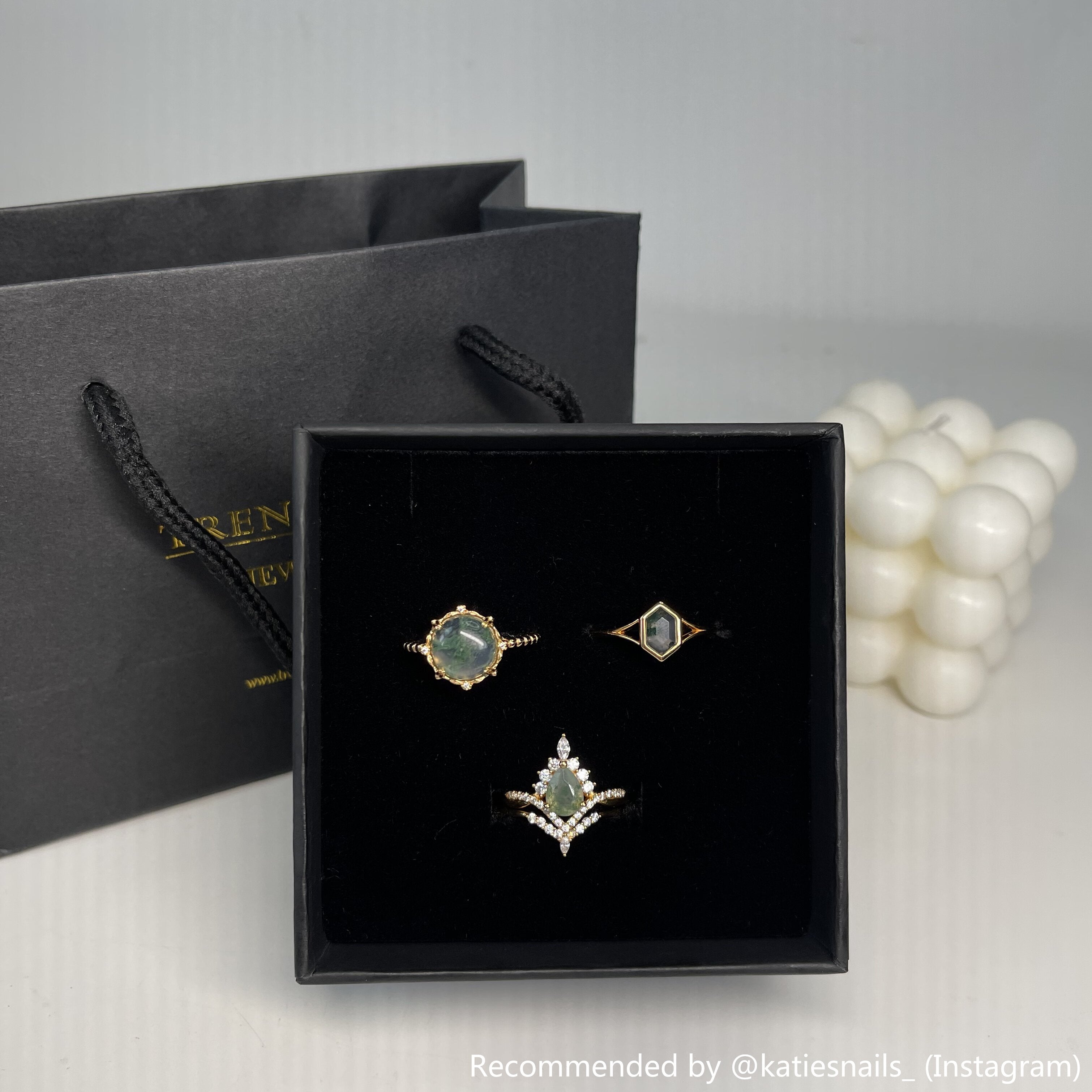Trendolla Prinzessin Kronbirnen form Moos Achat Verlobung Schicht Ring